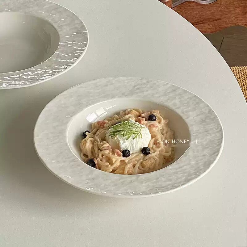 純色の高級岩石模様の麦わら帽子皿パスタ皿西洋皿ホテルの創造的な食器軽い高級陶器スープ皿