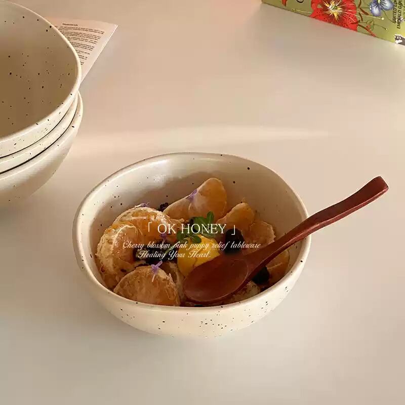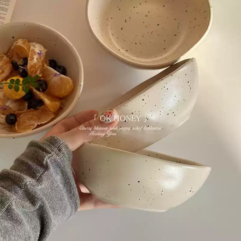 北欧風のシンプルなインクのしぶき、不規則な浅いセラミックボウル、シリアルボウル、朝食用ボウル、ヨーグルトボウル、特殊な形のボウル、インスタイル